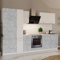 Toni 290 cm weiß / heller Beton Küchen-Set mit Arbeitsplatte sieht toll aus in modernen Interieurs