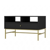 Kioto III Couchtisch schwarz graphit mit Schublade elegante Konstruktion verstärkt mit Metallrahmen in Gold Farbe subtilen Griff
