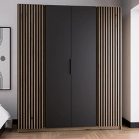 Kleiderschrank Kastano XI 200 cm Eiche evoke / schwarz modernes Design Kleiderschranktür mit Eiche evoke Lamellen dekoriert stilvolle Griffe