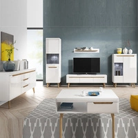 Atka Möbelset weiß / weiß glänzend / Eiche riviera modernes Design Kante mit Spezialfurnier verkleidet Sicherheitsglas gehärtet