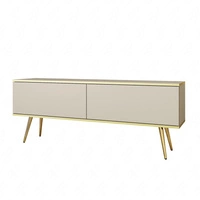TV-Schrank Luxury 135 cm beige elegantes Design, Korpus mit goldener Zierleiste, Schrank auf goldenen Metallbeinen