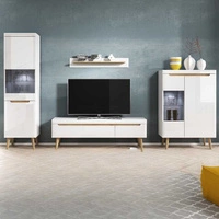 RTV Schrank Atka 107 cm weiß / weiß glänzend / Eiche riviera moderner Designschrank im skandinavischen Stil ideal für Wohnzimmer und Wohnbereich