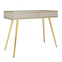 Konsole mit Schubladen Luxury beige eleganter Schminktisch mit kannelierten Fronten hohen goldenen Beinen Körper mit goldenen trim gekrönt