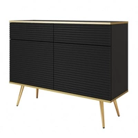 Kommode Luxury 107 cm schwarz stilvolle Kommode mit geriffelten Fronten Körper mit goldenen trim goldenen Metall Beine gekrönt