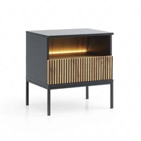 Nachttisch mit Schublade Amma schwarz / Eiche wotan geschmackvolles geriffeltes Dekor LED Beleuchtung idealer Schlafzimmerschrank