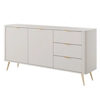 Lante Möbelset beige Design-Riffelung auf Möbelfronten Metallkantengriffe und hohe schräge Beine