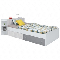 Bett mit Schublade Niko 90x200 cm weiß / Eiche / marine modernes Bettdesign ausziehbare Regale im Kopfteil