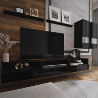 RTV-Hängeschrank Astros 172 cm schwarz / schwarz glänzend mit Einlegeböden Minimalistisches und elegantes Design, das sich in jede Einrichtung einfügt
