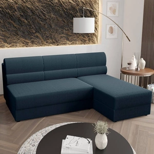 Ecksofa mit Schlaffunktion Fogu blau rechte Seite stilvolles Ecksofa mit einfachem Design mit Cord-Stoff Bettzeug Container abgedeckt