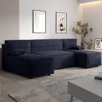 Ecksofa mit Schlaffunktion Brandon U navy blue Bettzeugcontainer weicher Stoff mit ausgeprägter Schlingenoberfläche