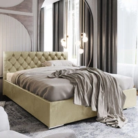 Polsterbett Alvorada 140x200 beige Bett mit Staukasten im modernen skandinavischen Stil mit gestepptem Kopfteil