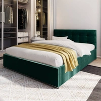 Polsterbett Alvorada 180x200 flaschengrün mit Container im modernen skandinavischen Stil mit gestepptem Kopfteil