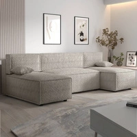 Ecksofa mit Schlaffunktion Brandon U cremefarbener Leinencontainer weicher Stoff mit ausgeprägter Schlingenoberfläche