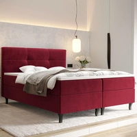 Boxspringbett Melba 140x200 dunkelrot Bett im modernen skandinavischen Stil mit markantem Kopfteil