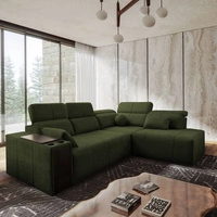 Ecksofa mit Schlaffunktion Tesalia VII grün rechte Seite modernes Design komfortable Schiebelehne Schublade in der Seite des Möbels