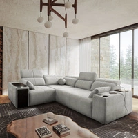 Ecksofa mit Schlaffunktion Penejos XII hellgrau rechte Seite stilvolles Ecksofa mit Bettzeugcontainern komfortable verstellbare Kopfstützen
