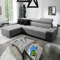 Ecksofa mit Schlaffunktion Castel IV beige linke Seite stilvolles Ecksofa mit Bettzeugcontainern und verstellbaren Kopfstützen