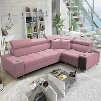 Ecksofa mit Schlaffunktion Dafni II Indischer rosa Samt rechtes Ecksofa mit Bettzeugstauraum Vollauszug