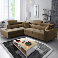 Ecksofa mit Schlaffunktion Nausa III hellbraun linksseitig Samt stilvolles bequemes Ecksofa verstellbare Kopfstützen Container für Bettzeug