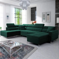 Ecksofa mit Schlaffunktion Nausa VI flaschengrün rechtsseitig stilvolles Ecksofa mit komfortabler Verarbeitung weichen Samtstoffes
