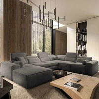 Ecksofa mit Schlaffunktion Penejos IX hellgrau rechte Seite stilvolles Ecksofa mit Bettzeugcontainern komfortable verstellbare Kopfstützen