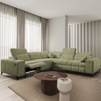Ecksofa mit Schlaffunktion Penejos III Lux oliv links bequemes Ecksofa für das Wohnzimmer mit ausziehbarem Fußteil Bettwäschecontainer
