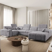 Ecksofa mit Schlaffunktion Penejos III Lux grau linksseitiges Komfort-Ecksofa für das Wohnzimmer mit ausziehbarem Fußteil Bettwäsche-Container