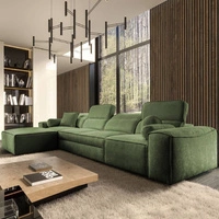 Ecksofa mit Schlaffunktion Viano XII grün links stilvolles Ecksofa mit interessanter Form verstellbare Kopfstützen Zierkissen