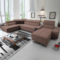 Ecksofa mit Schlaffunktion Castel XII braun linke Seite stilvolles und bequemes Ecksofa für Wohnzimmer funktionelle verstellbare Kopfstützen