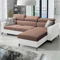 Ecksofa mit Schlaffunktion Savona hellbraun/weiß links elegantes Ecksofa mit verstellbaren Kopfstützen Ziernähte