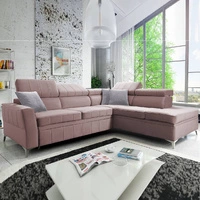 Ecksofa mit Schlaffunktion Rava lavendelrosa links Samt komfortables und funktionelles Ecksofa mit verstellbaren Kopfstützen