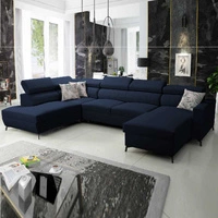 Ecksofa mit Schlaffunktion Rava III blau rechts Samt komfortables Ecksofa mit verstellbaren Kopfstützen und Bettzeugcontainer