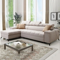 Ecksofa mit Schlaffunktion Rava III hellbeige rechts Samt bequemes Ecksofa mit verstellbaren Kopfstützen und einem Bettzeugbehälter