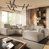 Ecksofa mit Schlaffunktion Viano X hellgrau links Design Ecksofa für Wohnzimmer im modernen Stil verstellbare Kopfstützen