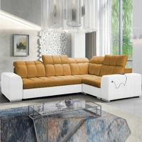 Ecksofa mit Schlaffunktion Rava III gelb rechts Samt komfortables Ecksofa mit verstellbaren Kopfstützen und Bettzeugcontainer