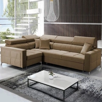 Ecksofa mit Schlaffunktion Nausa II hellbrauner linksseitiger Samt Ziernähte auf der Sitzfläche Ecksofa mit Bettkasten