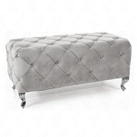 Hesta Pouffe 100 cm hellgrau ideal Hocker schmutzabweisend und kratzfest Sitz Pouffe wird als eine gepolsterte Bank gesteppte Elemente mit Kristallen arbeiten