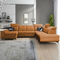 Ecksofa mit Schlaffunktion Fogu U III Honig-Gelb stilvolles Ecksofa mit Armlehnen und Bettzeugablage Cordstoff