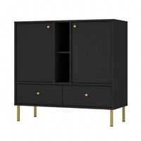 Set von Wohnzimmermöbel Kioto III schwarz Graphit stilvolles Design elegante Möbel auf einem goldenen Metallrahmen unterstützt subtile Griffe