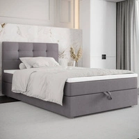 Boxspringbett Flint 90x200 grau im modernen skandinavischen Stil mit gepolstertem Kopfteil Bett mit Staukasten