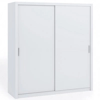 Schiebeschrank Rico 200 cm weiß geräumiger Kleiderschrank für Schlafzimmer Garderobe oder Flur klassische Form mit geometrischen Formen