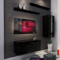 Mit der Magnus-Hängeschrankwand in schwarzem Glanz können Sie Ihre Multimedia-Ecke äußerst modern einrichten