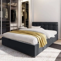 Polsterbett Mona 140x200 graphit mit Staukasten im modernen skandinavischen Stil mit gestepptem Kopfteil mit Kristallen