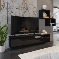 Mesini schwarz / schwarz glänzend moderne Wohnwand mit praktischem Push-to-Open-Schubladensystem