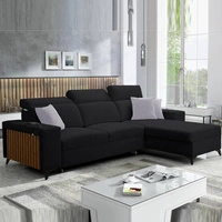 Kelly Ecksofa mit Schlaffunktion schwarz rechtsseitig geflochten Komfort und Funktionalität Eckseite mit Latten abgeschlossen