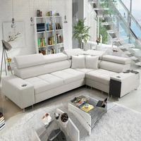 Ecksofa mit Schlaffunktion Dafni II elfenbeinfarbenes rechtsseitiges Ecksofa aus Samt mit Bettzeugstauraum und Vollauszug