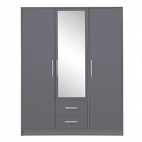 Kleiderschrank mit Spiegel Caspe 150 cm anthrazit modernes Design ABS-Finish und Aluminiumgriffe