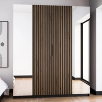 Kleiderschrank mit Spiegel Kastano XIV 200 cm schwarz / Eiche evoke elegantes Design Kleiderschranktür mit schwarzen Lamellen dekoriert Kleiderschrank für Flur
