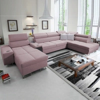 Ecksofa mit Schlaffunktion Dafni V lavendelrosa links geflochten bequemes und praktisches Ecksofa mit verstellbaren Kopfstützen