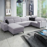 Ecksofa mit Schlaffunktion Viano VII grau blau links modisches und stilvolles Ecksofa mit verstellbaren Kopfstützen Zierkissen